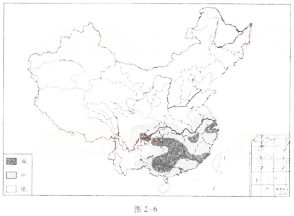 【解题指要】 本题以酸雨为主考查当今世界的主要环境问题。题目涉及中国的酸雨问题,要求熟练掌握中国政区的知识。