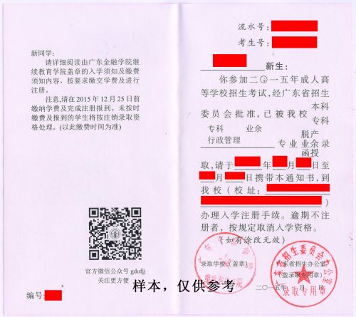 以上是关于“2015年贵州省成人高考领取录取通知书和注册方法”的全部内容,想获取更多关于贵州省成人高考的相关资讯,如贵州成考报名时间、报考条件、成考院校、贵州成考专业等,敬请关注贵州成考网(m.gzck.gz.cn)。